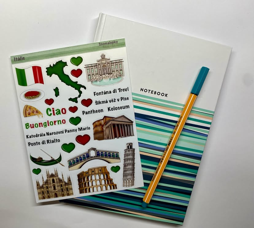 Vzpomínka na Itálii, co se vejde do jednoho platíčka. Ručně kreslené motivy pro tvůj deník nebo cestovatelské album.