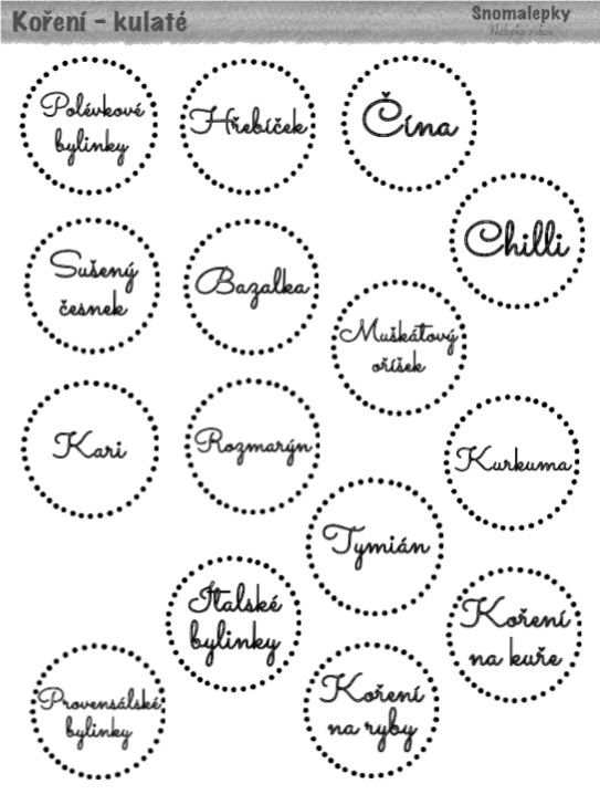 Samolepky s elegantním minimalistickým designem Vám pomohou udržet přehled ve Vašem koření - praktické, čitelné a krásné zárověň.
