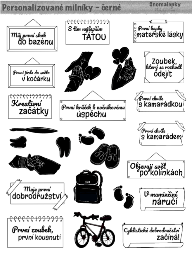 Milníkové samolepky pro miminko - se jménem, protože Vaše dítě není "nějaké miminko". První úsměv, první zoubek, první Vánoce,... A protože každé miminko je originál, doplním i jméno - ať se ví, kdo tady dělá ty první krůčky ke slávě.
