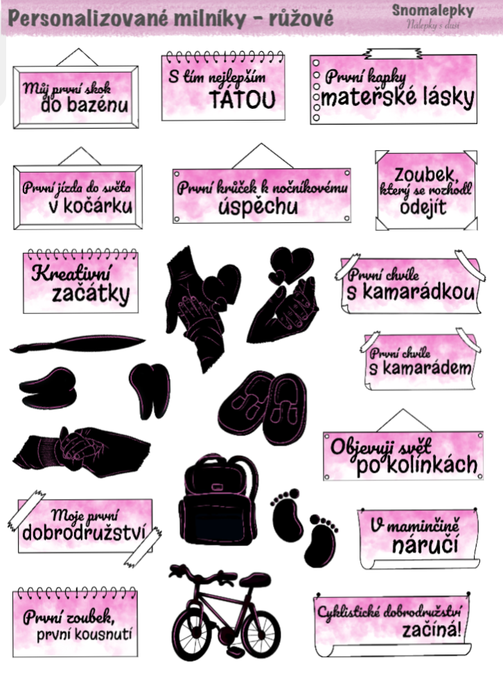 Milníkové samolepky pro miminko - se jménem, protože Vaše dítě není "nějaké miminko". První úsměv, první zoubek, první Vánoce,... A protože každé miminko je originál, doplním i jméno - ať se ví, kdo tady dělá ty první krůčky ke slávě.