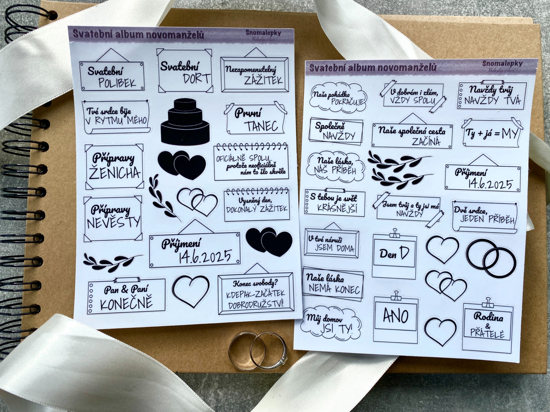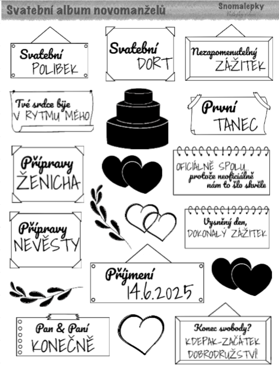 Originální samolepky plné romantiky i vtipu. Ideální pro uchování vzpomínek na Váš den D.